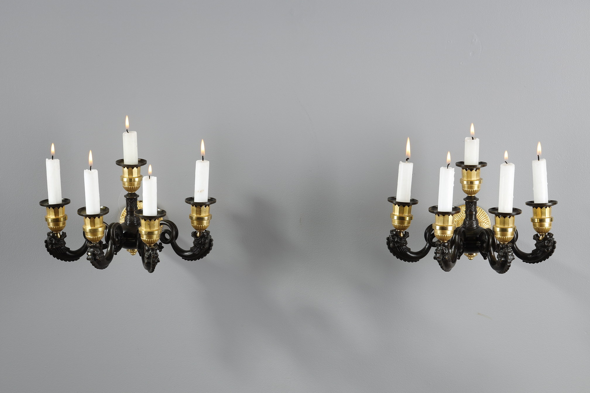 - Les appliques Restauration : leur forme en lyre rappelle les instruments antiques, tandis que leurs bras en volutes apportent du mouvement.