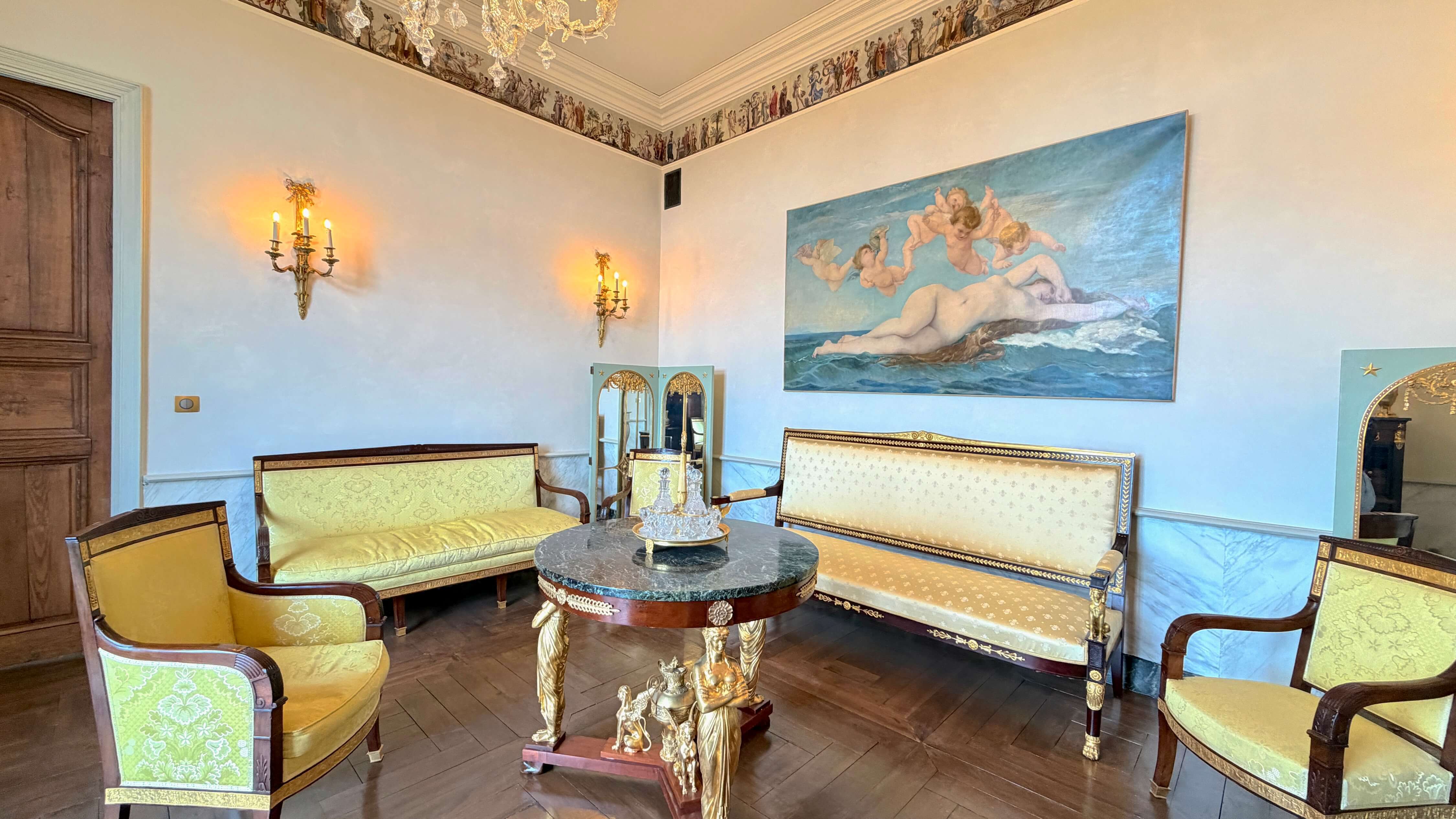 Aujourd’hui, le Salon Néoclassique du Château de Peyraud est un lieu vivant, où chaque détail raconte une histoire. Voici ce qui en fait un espace unique :