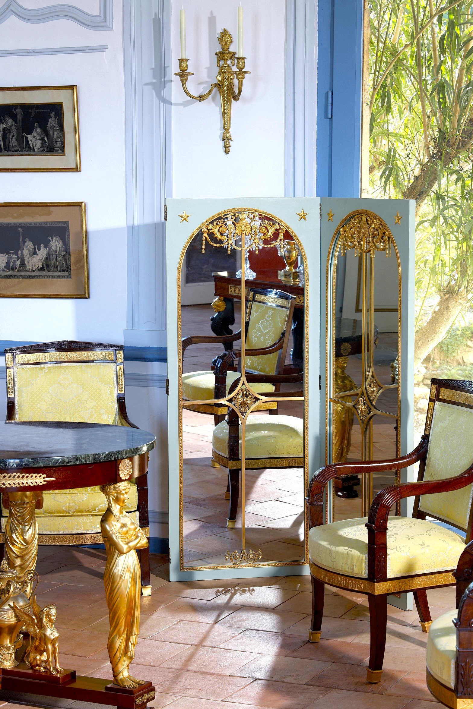 Plongez dans l'univers du Château de Peyraud et voyagez dans le temps à travers les différentes salles du Château décorées dans des styles du XVIIIe et XIXe siècle : Louis XV, Louis XVI, Restauration, Directoire, Empire etc... Ici nous vous proposons de découvrir un magnifique salon décoré dans le goût Empire.