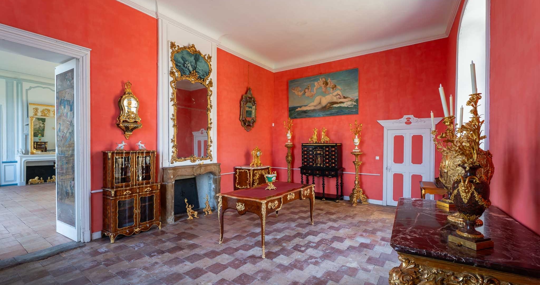 Plongez dans l'univers du Château de Peyraud et voyagez dans le temps à travers les différentes salles du Château décorées dans des styles du XVIIIe et XIXe siècle : Louis XV, Louis XVI, Restauration, Directoire, Empire etc... Ici nous vous proposons de découvrir un magnifique salon décoré dans le goût Louis XV avec ses murs aux couleurs vives se mariant parfaitement avec le style Rococo de l'époque !